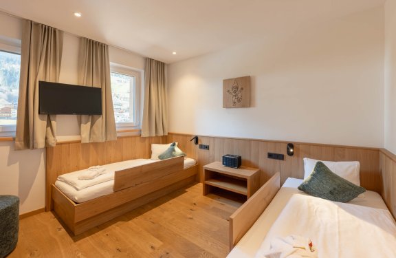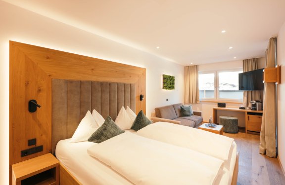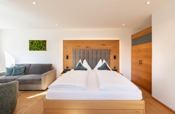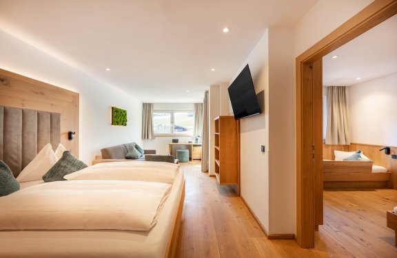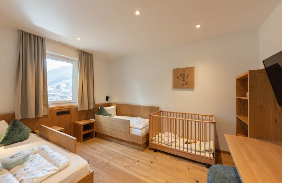 Discover our diverse room options, which offer something to suit every taste and need. Our luxurious suites with private SPA invite you to relax, while the Hirsch- and Auerhahn suites offer a unique glamping experience right on the terrace. Many of our rooms are also equipped with a bathtub, Bluetooth speakers or a Nespresso machine to give you the perfect start to the day. Immerse yourself in the cozy atmosphere and enjoy the highest level of comfort in the Kinderhotel Waldhof.
